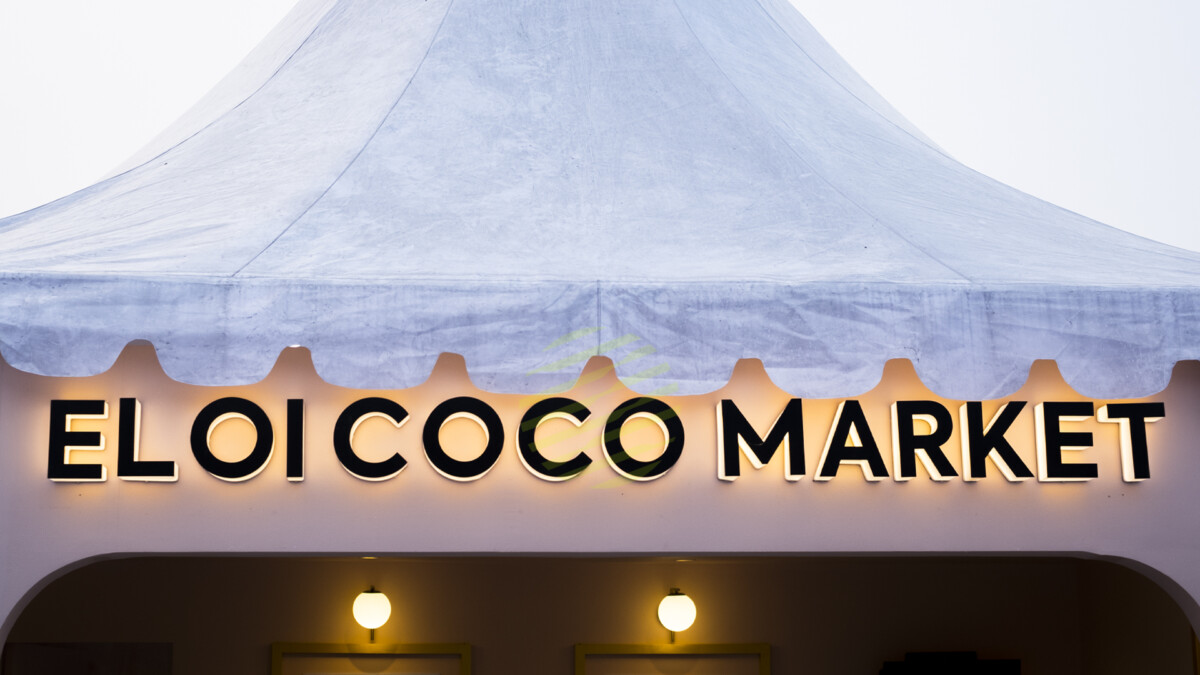Custom Booth Installation for ELOI COCO MARKET at Madya Gbk ,outdoor booth with illuminated acrylic logo